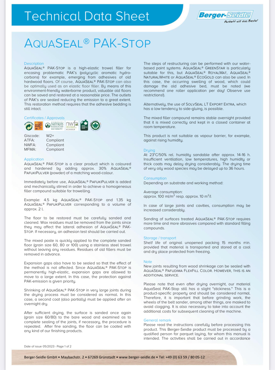 Drying: At 73.4°F/50% humidity, sandable after approx. 14-16 hours. Insufficient ventilation, low temperatures, high humidity or thick coats may delay drying considerably.